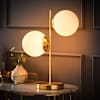 Jas Gold 2-Way Table Lamp with White Glass Globe Shades