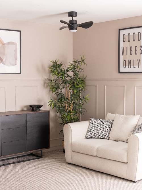 Ceiling fans dont have to be an eyesore, they can be sleek, silent, and contemporary. Three rounded matt black ceiling fan blades with integrated led light in a clean, modern design. Comes with a remote control to switch the light and fan functions on and off, increase or decrease brightness, change fan speed or set a timer. Three light settings; 65k, 4k or 3k. Six fan speeds. Blade span of 24 inches. Two, four or eight hour timer function. Security lighting mode and natural breeze settings. Reverse spin feature (perfect for maximising the effects of heating during the winter.) dimensions: width 6cm, height 3cm, depth 6cm. This product requires hard wiring, which is a job for a professional.