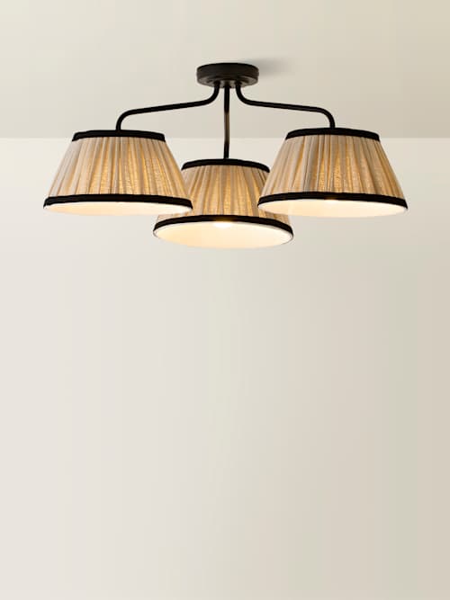 Turn heads with Clara, a stunning 3-arm black ceiling light. Featuring three pleated shades with matching trim, it blends timeless design with a modern edge. Ideal for creating a cosy, inviting atmosphere in dining rooms or living areas, this light adds depth, warmth, and undeniable style. Whether you’re hosting dinner or curling up with a book, this piece makes every moment feel a little more special.