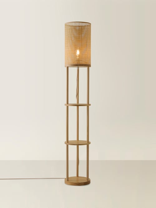 Elsa 3 Tier Shelved Floor Lamp with Bamboo Shade