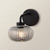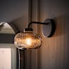 Light up your bathroom with this timeless Amaia, matt black wall light with smoked, ribbed glass.