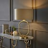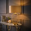 Antonia is the luxury brushed gold table lamp base that's got style in spades. With its sleek oval shape and Art Deco-inspired design, it's a true statement piece. Perfectly paired with a beige fabric shade with a gold inner, Antonia brings an instant touch of glamour to any room. The shiny gold finish and elegant lines make it a lamp that shines on its own yet leaves room for your personal flair. Ready to add a bit of luxe lighting? Antonia's got it covered!