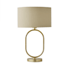 Antonia Brushed Gold Oval Table Lamp with Beige and Gold Shade