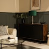 If you’re looking to add a sense of timeless style and sophistication to your home, look no further than the Balan brushed chrome and clear table lamp with medium velvet Reni shade in forest green.