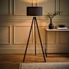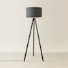 Barbro Black Wood Tripod Floor Lamp with Large Charcoal Shade