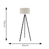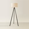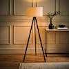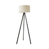 Barbro Black Wood Tripod Floor Lamp with White Trim Linen Shade