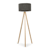 Barbro Light Wood Tripod Floor Lamp with Large Charcoal Boucle Shade