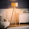 Barbro Light Wood Tripod Floor Lamp with Large Natural Shade