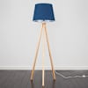 Barbro Light Wood Tripod Floor Lamp with Large Navy Tapered Shade