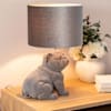 - Made of polyresin, this table lamp is an amazing way to add some personality and a velvet grey pop of texture into any room you choose.