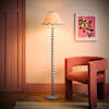 The Birdie bobbin floor lamp in powder blue is the best way to add a little sweetness to your style. Soften up your interiors with a style so versatile you could have one in every room from the nursery to the dining room. Matched with a blue trim scallop shade.