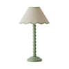 Bobbles Sage Green Bobbin Table Lamp with Green Trim Scallop Shade