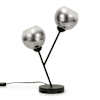 The black 2 way table lamp with smoked glass shades adds dimension to any space with its double light source design. The matte black body and smoked glass shades are suited to any modern home and bring a moodiness to the decor.