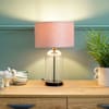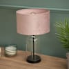 Jessy Black and Clear Glass Table Lamp with Blush Velvet Shade