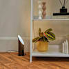 This contemporary uplighter is specially designed to be positioned by a wall, creating, subtle, ambient lighting