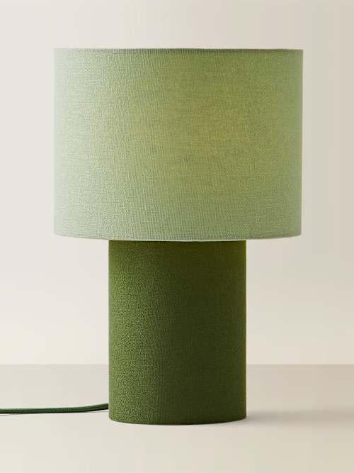Add a splash of colour with the Bobby green duo fabric table lamp! With a matching fabric shade and base in bold green, plus a colour-matched cable for that extra style boost, it’s a fun and fashionable lighting choice. Also available in a rich mocha tone for a more grounded vibe. Whether you're styling a shelf, bedside, or cosy corner, Bobby brings playful charm and a polished finish to any space.
