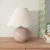 The Bosco ceramic table lamp in stone is an elegant and understated ceramic globe base. Perfectly matched with the green trim scallop shade.