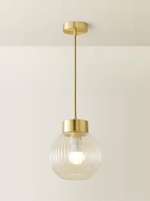 Brianna Gold Capped Ribbed Glass Pendant Ceiling Light