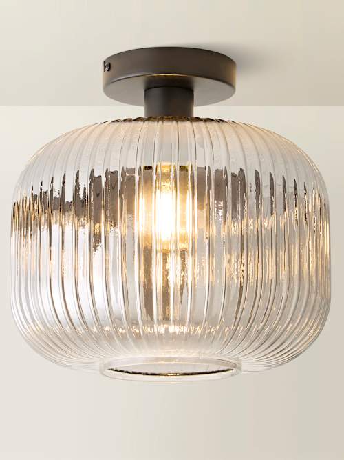 Calpe Matte Black and Ribbed Smoked Glass Ceiling Light