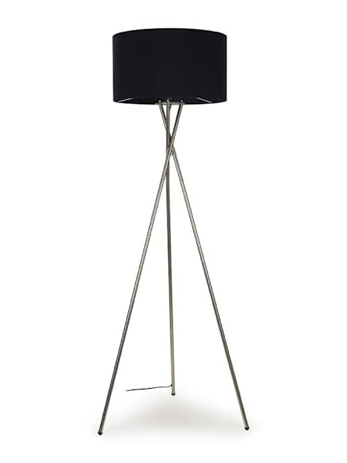Camden Brushed Chrome Tripod Floor Lamp with Large Black Shade
