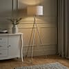 Camden Brushed Chrome Tripod Floor Lamp with Large Grey Shade