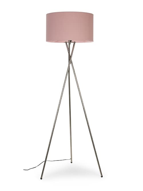 Camden Brushed Chrome Tripod Floor Lamp with Large Pink Shade