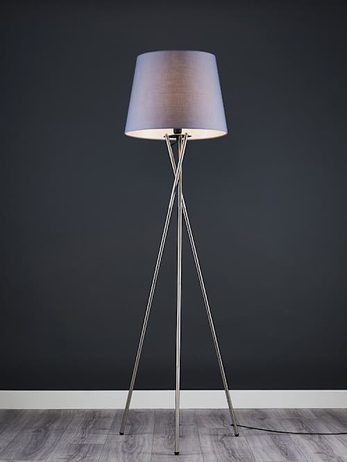 Camden Brushed Chrome Tripod Floor Lamp with Large Grey Tapered Shade