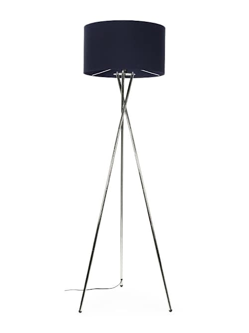 Camden Chrome Tripod Floor Lamp with Large Navy Shade