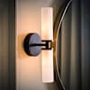 Light up your bathroom with the stylish Canya IP44 2 way matt black wall light with reeded glass shades.