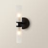 Canya IP44 2-Way Matte Black Wall Light with Reeded Glass Shades