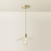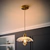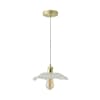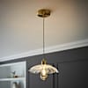 - A pendant light with gold finishes and a clear blooming, floral design pendant shade. The perfect foundation to any rooms lighting.