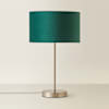 Ooh, simple and elegant. You could welcome the Charlie brushed chrome table lamp in any space and top it off with a pop of colour with the small velvet Reni shade in forest green.