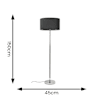 - The lamp base has a diameter of 25cm and height of 129cm when fully assembled.