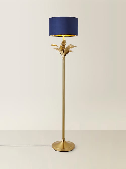 Christina Gold Leaves Floor Lamp with Navy Velvet and Gold Shade