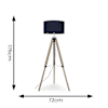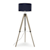 Clipper Light Wood and Chrome Floor Lamp with Large Navy Blue Shade