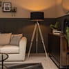 Clipper Light Wood and Chrome Floor Lamp with Large Navy Blue Reni Shade