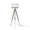 Clipper Light Wood and Chrome Floor Lamp with Large White Reni Shade