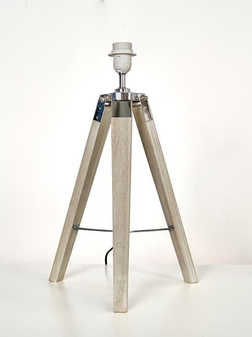 Clipper Light Wood and Chrome Tripod Table Lamp Base