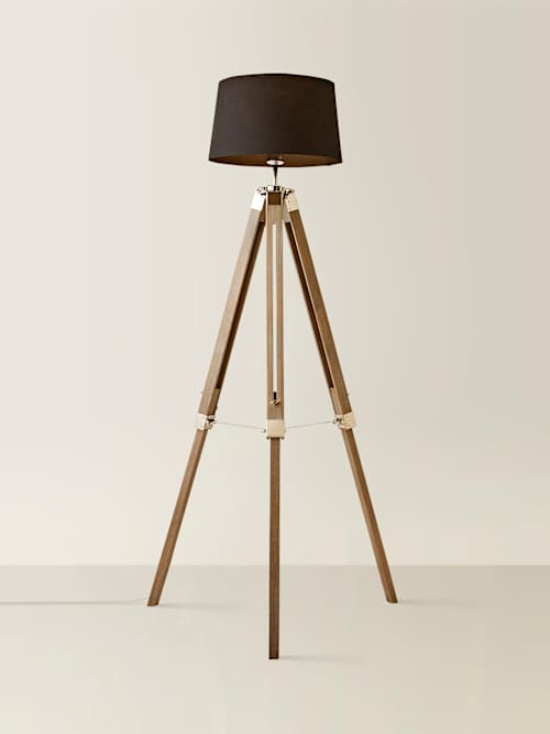 Clipper Light Wood Tripod Floor Lamp with Black Shade