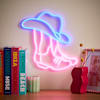 Say howdy to the Cowboy neon wall light - a yeehaw-inspired design that’s all sass and shine. With glowing electric blue hat and purple boots, this western-style wonder lassos instant personality onto your walls. Perfect for bedrooms, games rooms or quirky statement corners, it brings rodeo-ready energy and a dash of neon nostalgia. Whether you’re into country cool or just love playful lighting, this cowboy’s here to ride shotgun on your décor and deliver a glow with serious swagger.