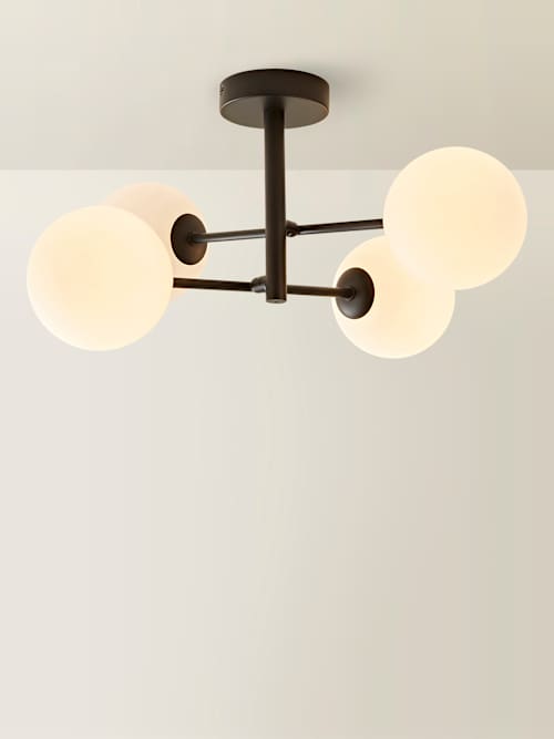 The Darla multi-arm ceiling light brings frosted globe fabulousness to your space! Available in matte black or navy, it’s sleek, stylish, and full of character. With matching wall lights in the range, you can keep the look flowing from room to room. Thanks to its IP44 rating, Darla’s just as happy in the bathroom as it is in the lounge. It’s a bold, modern twist on classic lighting, perfect for adding personality, practicality, and a little glow-up to your home.