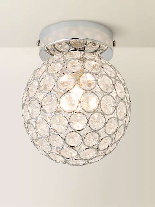 The ella sphere flush ceiling light in chrome is a glitzy little number that adds a lot of glow and glamour to any space. The acrylic beads will play with the light so the glamour hits the whole room. A sphere flush ceiling light with integrated shade. Shade consists of a metal frame and acrylic beads. Lots of glitz in a small design, the chrome base with acyrlic beading sends light dancing to extend the effect. A dazzling addition to any kitchen, living room, bedroom, hallway or home office. The flush design makes it ideal for rooms with lower ceilings. Requires 1 x g9 bulb, max 1w. Personalise the lighting with your choice of warm, cool and smart bulb. Requires installation and hardwiring.