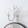 - A round wall plate with two glass shades and integrated LED lighting components.