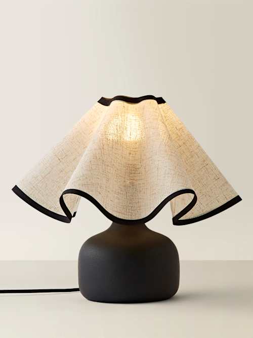 Emilia Black Table Lamp with Black Trim Wave Shade