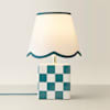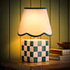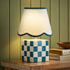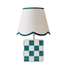 <p>Dip your toe into the checkerboard trend with the Evie ceramic table lamp in sage green, paired with a scalloped, green trimmed linen shade. A pop of colour and pattern all in one. </p><ul><li>A ceramic lamp base with a fabric drum shade. Featuring a rocker switch on a convenient 150cm cable. </li><li>A cubic ceramic base with a green checkered design and tapered, scalloped shade finished with a green trim. </li><li>Ideal for bedside tables, living room side tables, hallway tables, dining rooms and home office spaces. </li><li>Requires 1x E14 bulb, max 10W. Personlise the lighting experience with your choice of cool, natural, warm or smart bulb. </li>Doesn't require installation, just plug into any UK plug socket and get glowing! Comes with a 150cm cable for hard to reach plugs. </li></ul>