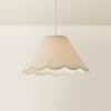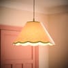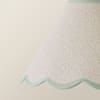 - Large linen lamp shade with a scalloped edge and green trim, the perfect finishing touch for any floor lamp or pendant light.