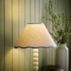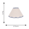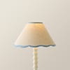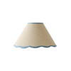 - Small linen lamp shade with a scalloped edge and blue trim, the perfect finishing touch for any table lamp.