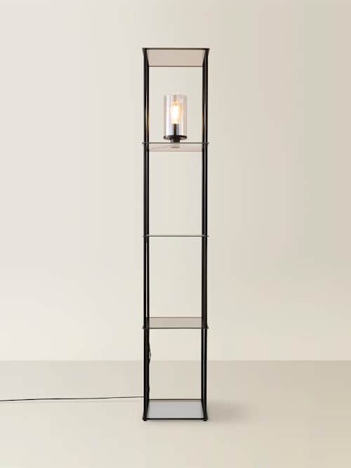 Gobie Black Clear Glass Shelved Floor Lamp