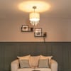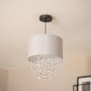 The grey fabric pendant shade with acrylic droplets is the perfect basic… for those who love being a bit extra.