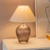 - Topped with a fabric lamp shade.